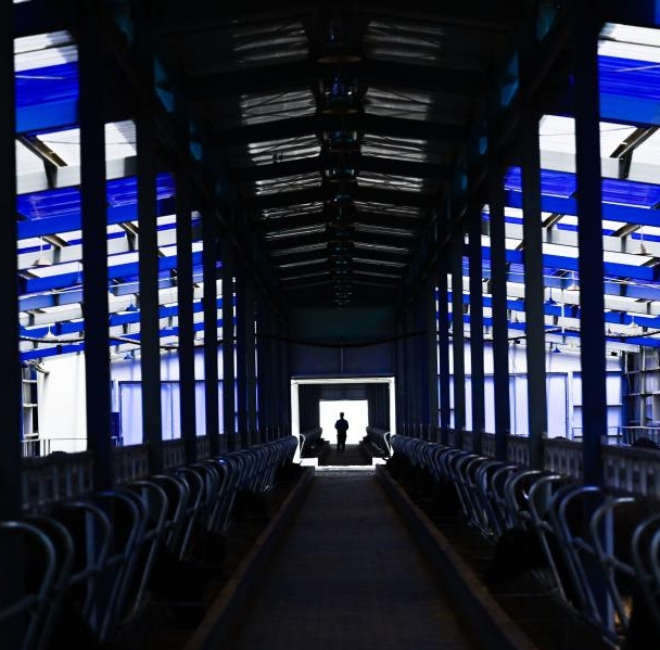 4月2日,在青海省玉树藏族自治州玉树市牦牛标准化养殖综合示范基地,工作人员在查看棚舍。新华社记者 张龙 摄