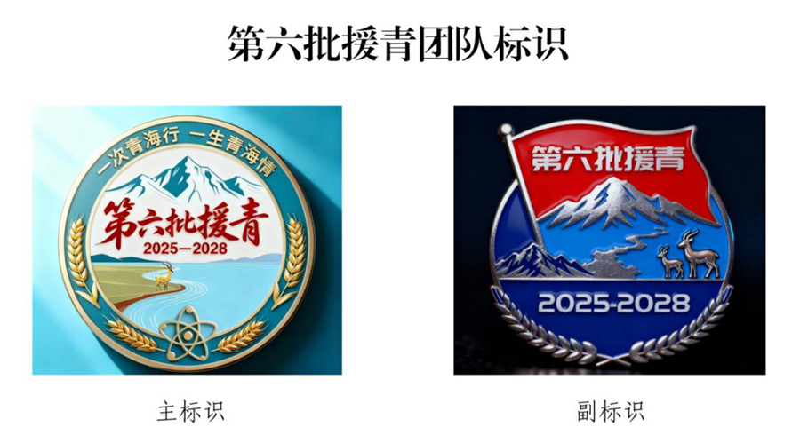 此次发布的标识包含主标识与副标识,设计巧思与青海元素、援青精神深度交融。主标识以圆形构图彰显团结,正中央“第六批援青2025—2028”红色字样醒目有力,四周昆仑山脉巍然矗立、三江之源奔涌向前,象征“两弹一星”精神的原子核图案点缀其间,将“缺氧不缺精神、艰苦不怕吃苦、海拔高境界更高”的精神风貌浓缩于方寸之间。副标识采用椭圆形设计,山巅之上红色援青旗帜迎风招展,山涧河流奔腾不息,山脚下藏羚羊嬉戏觅食,生动诠释了援青干部人才与青海各族群众守望相助的深厚情谊,以及共建美好青海的坚定信念。
