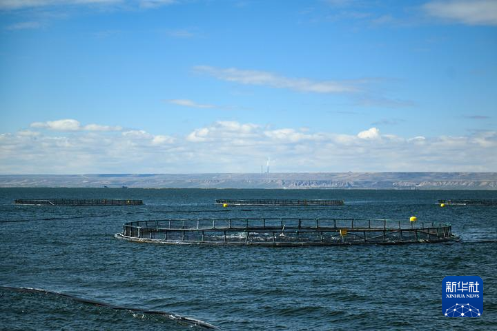 图为龙羊峡水库冷水鱼养殖网箱。新华社记者张龙 摄